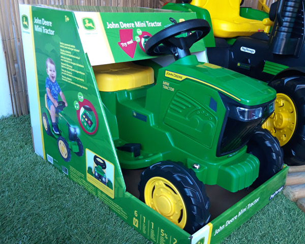 Peg Perego je do sada John Deere igračake na akumulator (Ground Force, Ground Loader i Gator), proizvodio samo za djecu koja nisu mlađa od 3 godine. Dolaskom John Deere Mini-a, moguće je već s jednom godinom starosti uživati u vožnji traktora na akumulator.