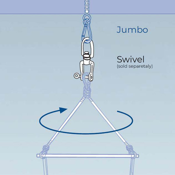 Ako koristite ovaj set kuka za stropnu montažu viseće stolice, preporučujemo Swivwl (kupuje se odvojeno) poseban okretni dodatak kako bi se stolica mogla slobodno okretati.