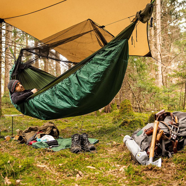 Dolazi s kontinuirano podesivim ovjesima i trakama za pričvršćivanje podloge neposredno ispod viseće mreže (viseća ležaljka za spavanje nisu uključeni).
