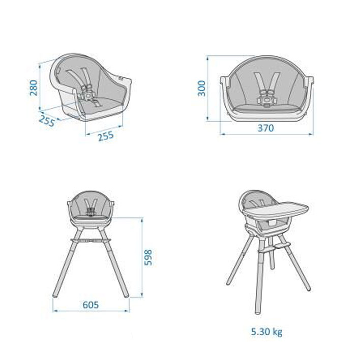 Moa se koristi na 8 različitih načina, pa umjesto da morate kupiti 8 zasebnih proizvoda koji zahtijevaju prostor, potrebna vam je samo jedna visoka stolica. Svaka mama ili tata znaju da je vrijeme hranjenja neuredan posao. No, s vodootpornim umetkom koji se može prati u perilici rublja, upladanj koji se može prati u perilici posuđa i pojasom koji se može prati, Moa je super brzo i jednostavno za održavanje čistoće.