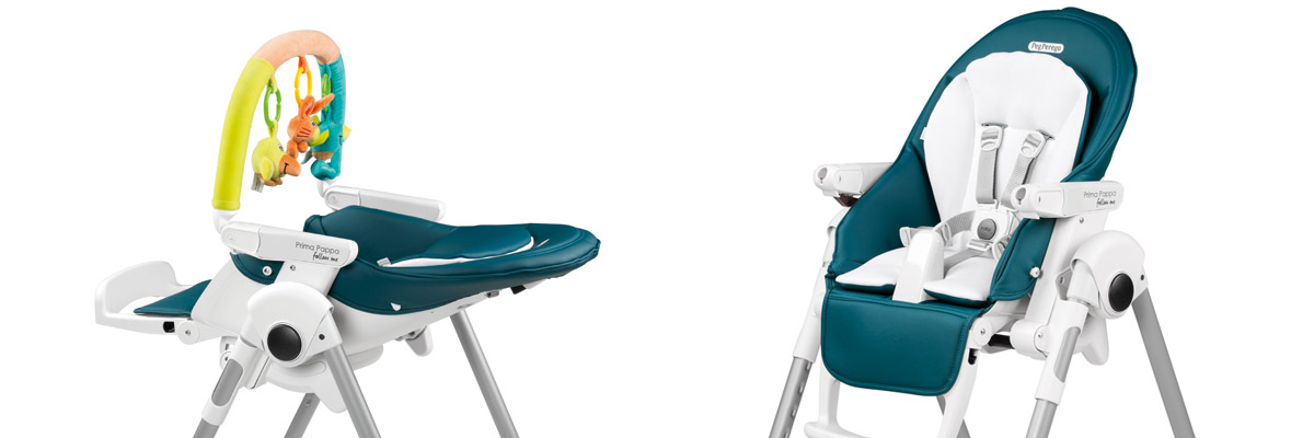 Dječja hranilica Prima Pappa Follow Me Plus može poslužiti kao udobna ležaljka za spavanac nakon ili prije jela. Sadrži mekani dodatni dvostrani jastuk koji je s jedne strane od prozračnog pamučnog materijala, a druga strana presvučen umjetnom kožom. U kompletu je luk s 3 mekane plišane igračke različitih boja i oblika koji pretvaraju hranilicu u centar za igru.