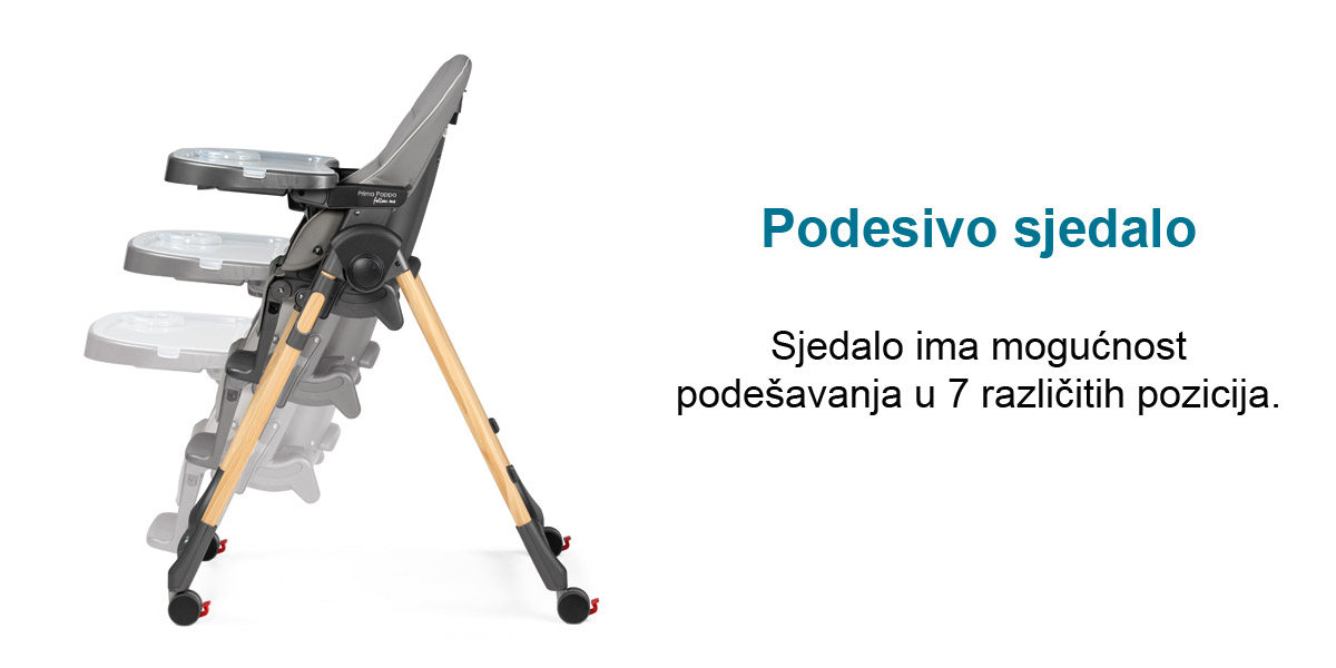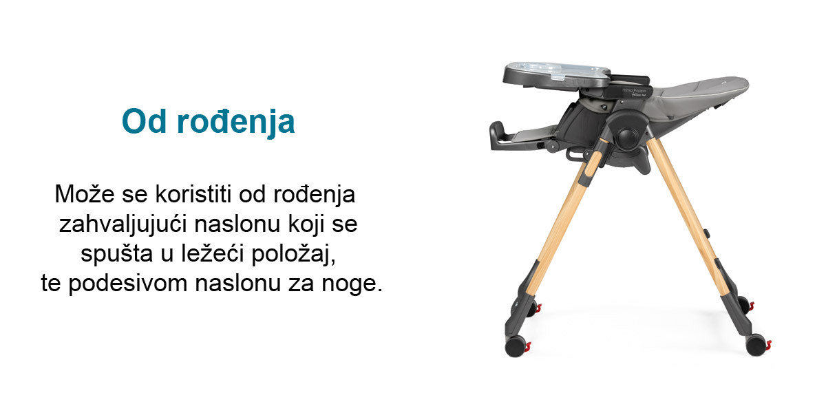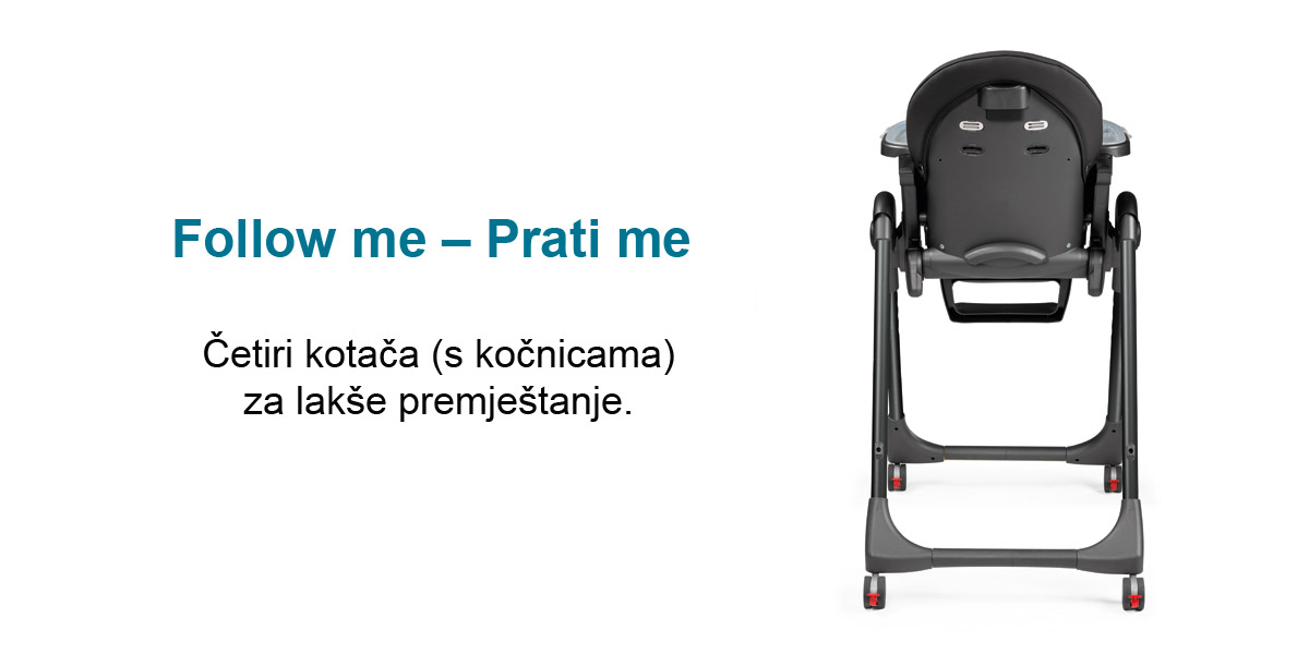 Prima Pappa follow me hranilica namijenjena je korištenju od rođenja te može poslužiti kao udobna ležaljka za spavanac nakon ili prije jela. Uz četiri kotača, prati Vas bilo gdje.