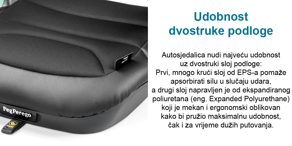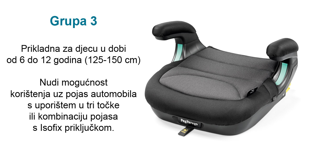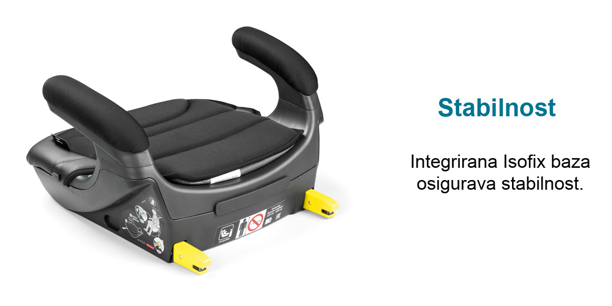 Peg Perego Viaggio Shuttle booster autosjedalica s Isofixom za stariju djecu koja već imaju fizičku strukturu tijela prikladnu za korištenje automobilskih pojaseva.